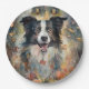 Plato De Papel Collie de la frontera de Halloween con calabazas a