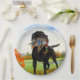 Estos platos de papel tienen una foto de un perro cazador encima de ellos.