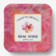 Colores cálidos modernos de color rosa brillante movidos por el naranja en un fondo acuático artístico. Resaltado con marco geométrico falso dorado. Combinación de tipos de letra única que es completamente personalizable (color, tipos de letra, tamaño, personalización). Con una acuarela, flor de hibisco rosa caliente.