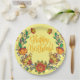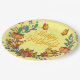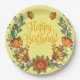 Un Colorido Amarillo Y Naranja Feliz Cumpleaños Plate De Papel Floral Con Flores De Arte Popular