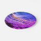Esta vibrante escena del océano, rosa y azul, colorida y relajante. "Ocean Bliss" está escrito con un elegante tipo de letra, a través del amplio cielo azul y las olas del océano. La naturaleza es luminosa y también hay olas suaves que salpican las rocas y que calman el rayo de luz del sol en el horizonte.