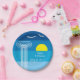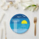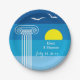 Plato De Papel Columnas griegas y gaviotas en la playa