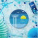 Columnas y gaviotas griegas de gaviotas de papel de bodas griegas con una columna blanca de Grecia y aves marinas sobre un fondo estilizado de bandas multicolores azules -marina, azul cielo, aqua- y el sol amarillo. Este elegante y moderno diseño de boda, totalmente personalizable, es perfecto para un boda griego o griego de verano, una ducha de novia, recepción, compromiso o fiesta de aniversario. Forma parte de una colección o conjunto de bodas.