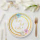 Plato De Papel Comamos pasteles de papel rosa y azul con flores