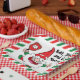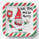 Cute Navidades de papel de pickleball con Santa jugando pickleball sobre fondo blanco. Come, bebe y sé alegre