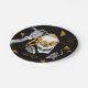 Este plato de papel de la fiesta de cumpleaños de Halloween con temática de sushi incluye un ilustracion esqueleto inspirado en una pintura japonesa para lavar tinta. Dibujé este arte usando tinta sumi y pinceles japoneses. El diseño humorístico del esqueleto, a menudo visto en ukiyo-e, es perfecto para fiestas de cumpleaños o fiestas de sushi durante la temporada de Halloween.