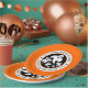 Este plato de papel de la fiesta de Halloween con colores naranja, negro y blanco presenta un adorno fantasma y letras de "Come, bebe y ten miedo" (se pueden cambiar por cualquier mensaje que quieras).