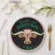¡Brilla la mesa de tus Navidades con estas placas Fiestas de "uno de los tipos"! Este cómico Longhorn Steer te está deseando..."Moo~ey Navidades Y'all"! Bella Artes original del artista Kerry Miller.