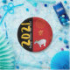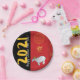 Ilustracion de búfalo de agua al estilo de las historietas colocado en el patrón tradicional chino rojo como fondo + año dorado del x en el centro con banda negra vertical para letras modernas amarillas : Feliz Año Nuevo Chino y gran 2021 a personalizar si quieres. Puede cambiar fácilmente estos textos (fuente, color, tamaño y posición) haciendo clic en el botón personalizar. Diseño en placa de papel. Ropa de papel, tarjeta de saludo, postal, invitación, artículos de artesanía, suministros de fiesta y más... Perfecto para un divertido Año Nuevo Chino del Ox 2021 o Cumpleaños (personas nacidas en el año Ox).