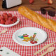 Verduras divertidas y otros alimentos con caras. Este diseño parece realmente efectivo en estas placas de papel