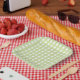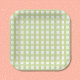 Un bonito plato de papel primaveral con un suave estampado de cuadros gingham verde. Perfecto para Pascua o cualquier otra celebración primaveral.