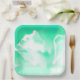 Plato de papel con estampado de flores verde marisco brillante