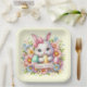 Platos de papel modernos de Pascua con un lindo conejito de Pascua rodeado de huevos de Pascua.