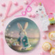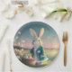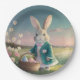 Plato De Papel Conejo de Pascua con chaqueta azul