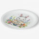 Conejito de Pascua con un Rótulo de Pascua rodeado de flores silvestres Placas de papel lanzando un espectacular fiesta con placas de papel de personalizable para hacer juego a tu tema. Cada pack de 8 platos de papel se imprime en cartón resistente decorado con los diseños y fotos que más te gusten. Son perfectos para servir pasteles, aperitivos o ensaladas. Solicite estas toallas con nuestras servilletas de papel para un conjunto completo de vajilla de fiesta que sus invitados amarán.