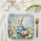 Plato De Papel Conejo de Pascua en un prado de tulipanes
