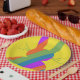 Plato De Papel Conejo de Pascua rayado con arco iris