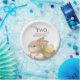 Plato de papel de fiesta de Pascua de conejito de acuarela cumpleaños de 2 años Hop Two It editable celebración de Pascua de primavera