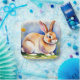 Celebra el Día de Pascua y el momento de la felicidad de primavera con este diseño de "feliz conejo 2". La imagen muestra un pequeño y alegre conejito marrón en un tranquilo prado.