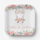 Plato De Papel Conejo floral enfrenta a un conejo el primer cumpl