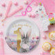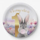 Plato De Papel Conejo primer cumpleaños chispa rosa