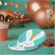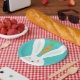 Platos de papel de conejo y zanahoria con servilletas a juego.