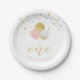 Plato De Papel Confetti dorado y rosado, Fiesta de los globos de
