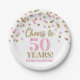 Plato De Papel Confetti rosado de oro viaja a 50 años cumpleaños