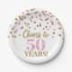 Plato De Papel Confetti rosado de oro viaja a 50 años cumpleaños