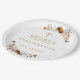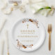 Estos elegantes y modernos platos de papel de confirmación floral de terracota rústica de otoño se pueden personalizar con su información en tipografía moderna. Diseñado por Thisisnotme©