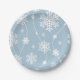 Plato De Papel Copo de Nieve Gris Azul Invierno Paisaje Navideño