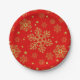 Diseño de navidades con copos de nieve dorados y estrellas de fondo rojo