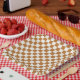Plato De Papel Copper and eggshell checkerboard pattern