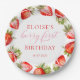 Plato De Papel Coquette Strawberry Bow Primer cumpleaños