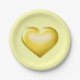 Este plato de papel presenta un corazón dorado con forma y aspecto de cristal. La imagen del corazón de vidrio dorado es genial para una celebración del 50 aniversario del boda.