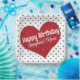 Celebrar un cumpleaños especial con este adorable y brillante diseño. Cuenta con un gran corazón purpurina rojo en el centro. Personalizar la edad y los detalles del fiesta a su información. Un bonito fondo polka punto para conformar con la decoración fiesta.