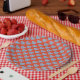 Las placas de papel con los corazones azules impresos en rojo. Creado con una sonrisa de iolantesdesign :-)!