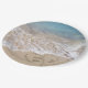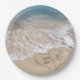 Los nombres de las parejas y los bodas datan en el corazón de la playa con surf en el océano. Los nombres y la fecha son modificables.