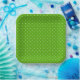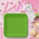 Platos fiestas de papel con diminutos patrones de corazón blanco sobre fondo verde brillante. Asegúrese de ver el resto de los corazones pequeños y la colección de papel de colores audaces