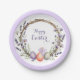 Plato De Papel Corona de Pascua de acuarela lavanda Huevos Conejo
