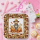Una Placa De Papel Cuadrado De La Cosecha De Caída Diseñada Con Cajas De Fruta Y Calabazas