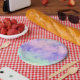This simple paper plate has a Cotten Candy themed pattern. Perfect for people that like clouds and the colors yellow, pink, purple, and orange. This minimalist pattern had a purple background color and a soft cloud texture look.