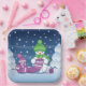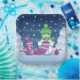 Ilustracion vectorial de dos adorables hombres de nieve personalizado vestidos con gorras de punto y bufandas. El gran muñeco de nieve artesanal está tejiendo un pañuelo demasiado grande para el pequeño. La bufanda ya está envuelta varias veces alrededor del lindo muñeco de nieve.