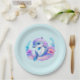 Platos de papel con un ilustracion adorable. Un delfín azul y púrpura rodeado de plantas submarinas de colores bonitos.