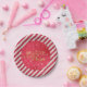 Este plato festivo será perfecto para que sus Navidades se reúnan con amigos y familia este año! El borde exterior tiene un patrón de rayas diagonales rojas y doradas. El centro es rojo con estrellas blancas brillando y tipografía que dice "CREA EN LA MAGIA" en Relieve metalizado dorado. Diseñado por Jen Hanson © para Digi-Zazzle It.