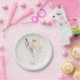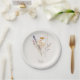 Plato de papel Cremoso Ducha. Nam. Texto dorado. Floral Otoñal.