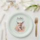 Platos de papel con un hermoso ilustracion con un bonito ciervo. Rodeado de rosas y flores.