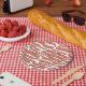 Un plato disposable redondo con un patrón de tocino realista, perfecto para los amantes del desayuno y las reuniones temáticas. ¡Disfruta de un aspecto vertiginoso sin el contenido generativo!
