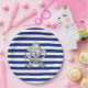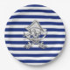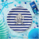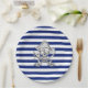 Un cromo plateado como un diseño pirata en una decoración de rayas azul marino. Un regalo náutico moderno. Utilice el vínculo "Preguntar a este diseñador" para contactarnos con sus solicitudes de diseño especiales o para obtener ayuda con alguna de sus necesidades de proyectos de personalización.