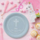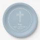 Plato De Papel Cruce en acero azul Comunión bautizo cristianismo